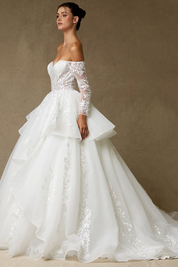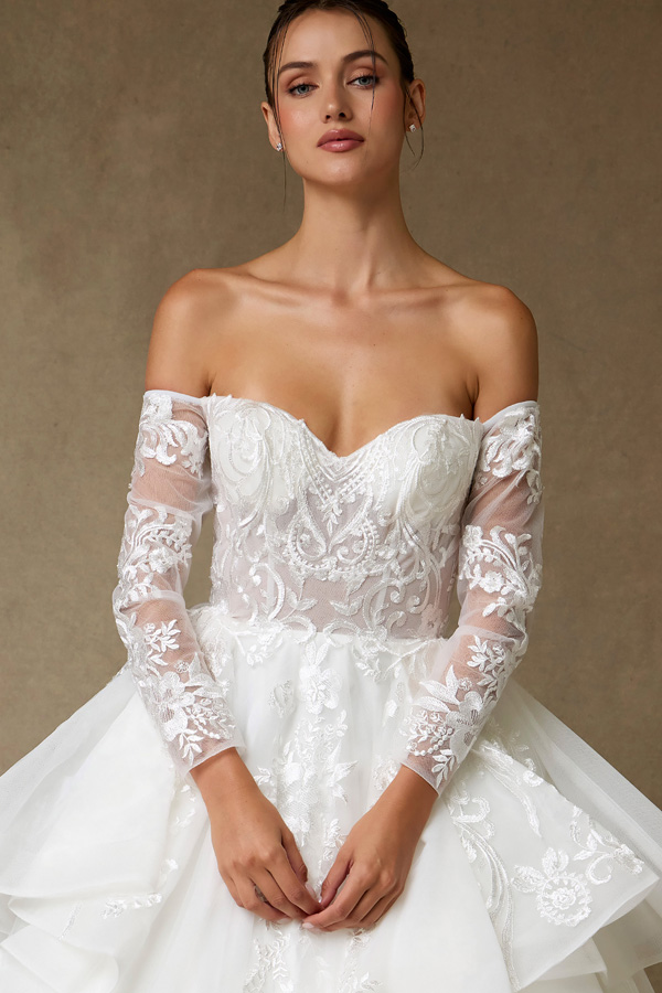- Strapless Off Shoulder Long Sleeve A Line Wedding