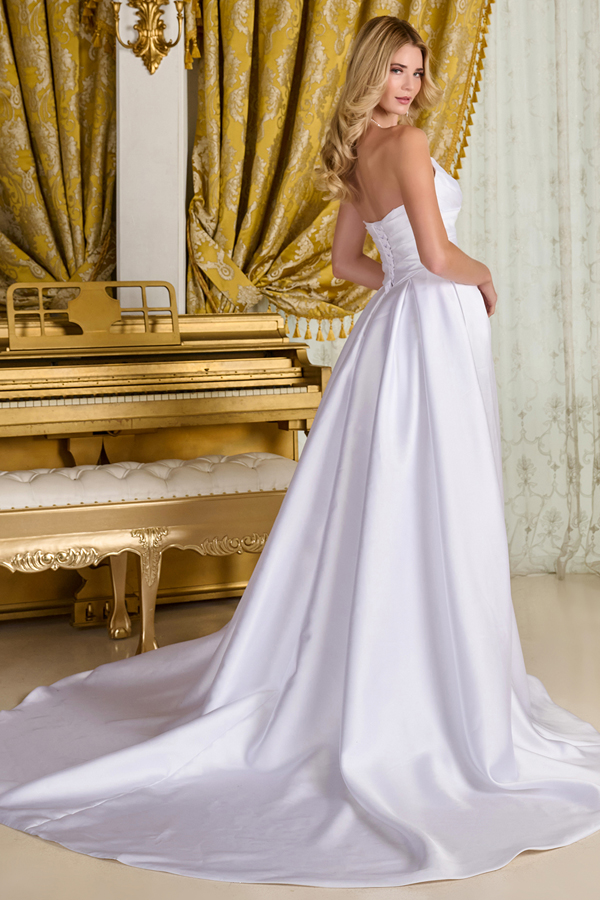 - Strapless V Neckline A Line Taffeta Wedding Gown