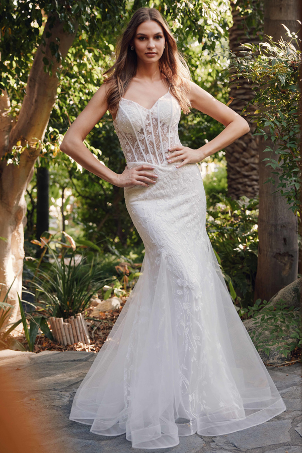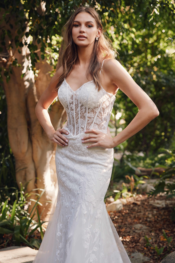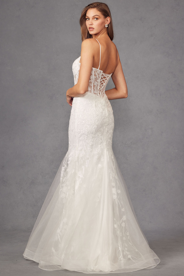 - Sleeveless Skinny Straps Bustier Corset Mermaid Dress
