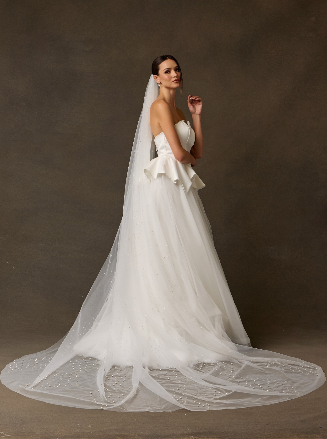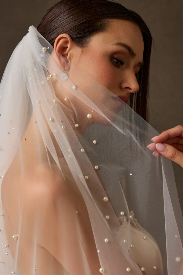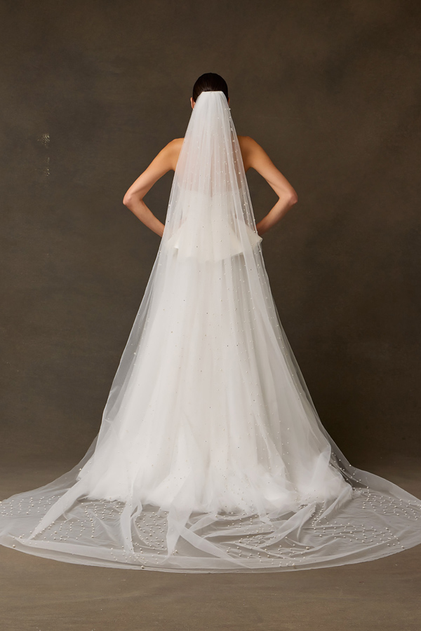 - Tulle Chapel Length Veil with Pearls and Jewel Detail