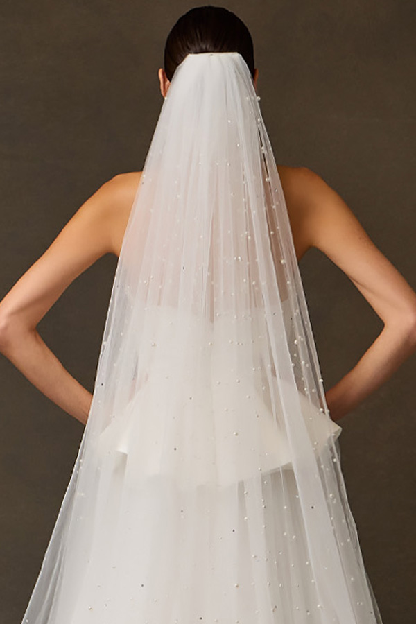 Tulle Chapel Length Veil with Pearls and Jewel Detail