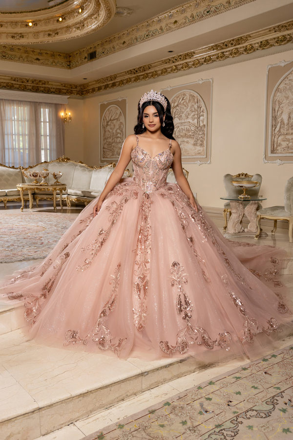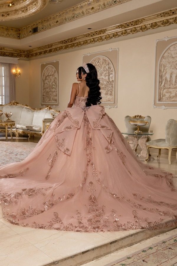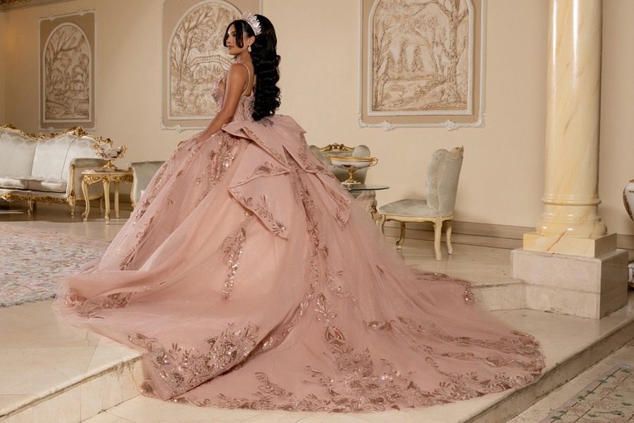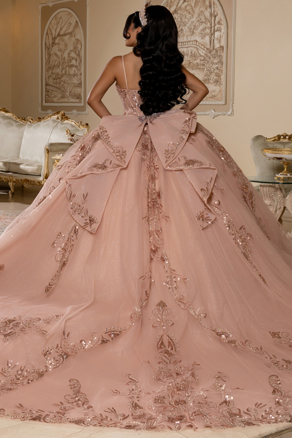 Features: Illusion Bodice, Bone-in Corset, Detachable Bow, Lace-Up Closure, Monarch Length.