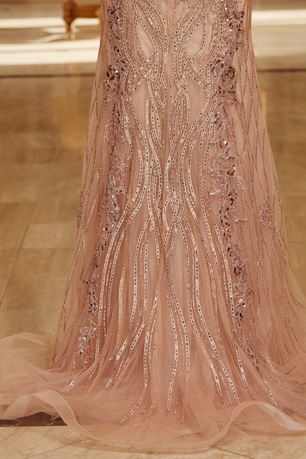 - Spaghetti Strap V Neckline Bead Work Evening Dress