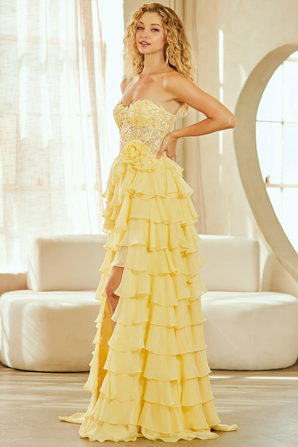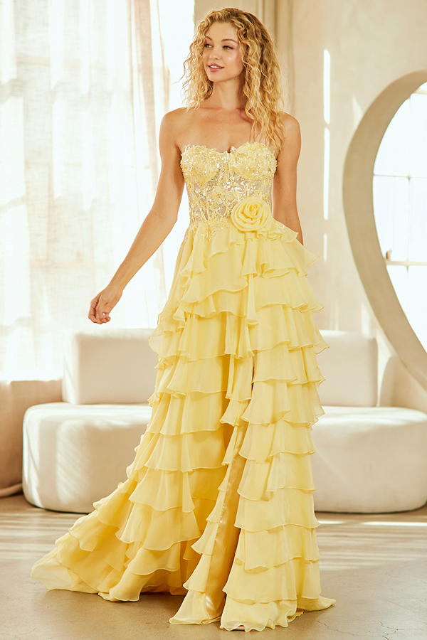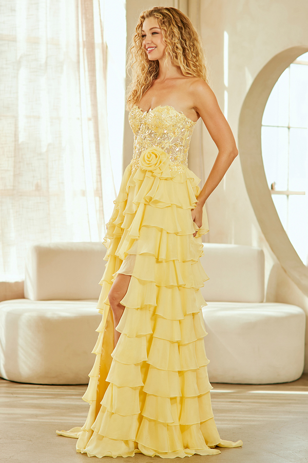 Strapless Bead Work Sweetheart Top Ruyffle Skirt A Line Dress