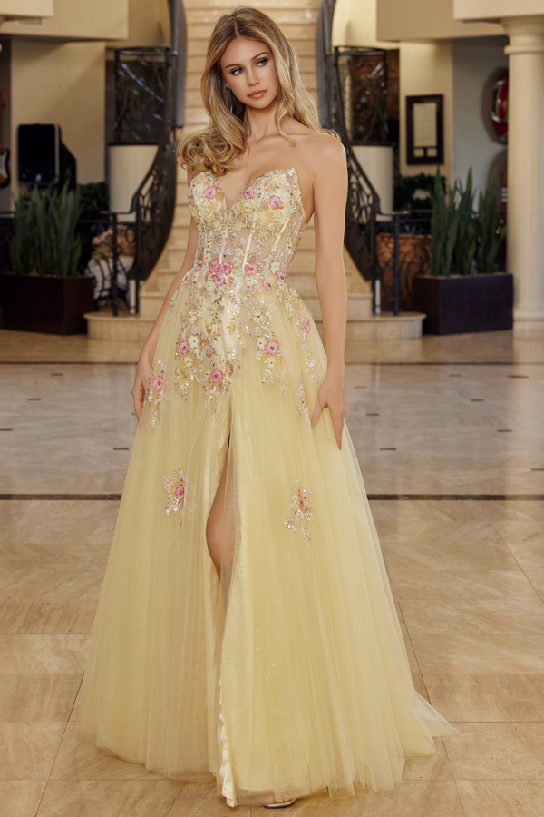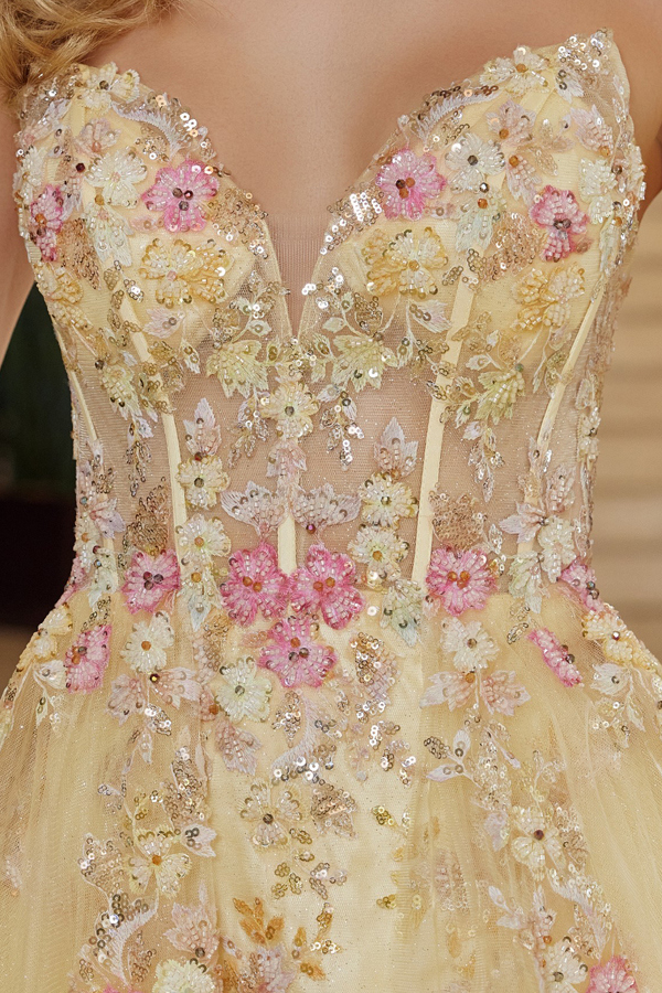 - Strapless Plunging V Embroidery Top A Line Dress