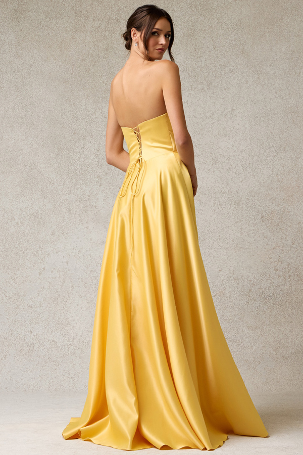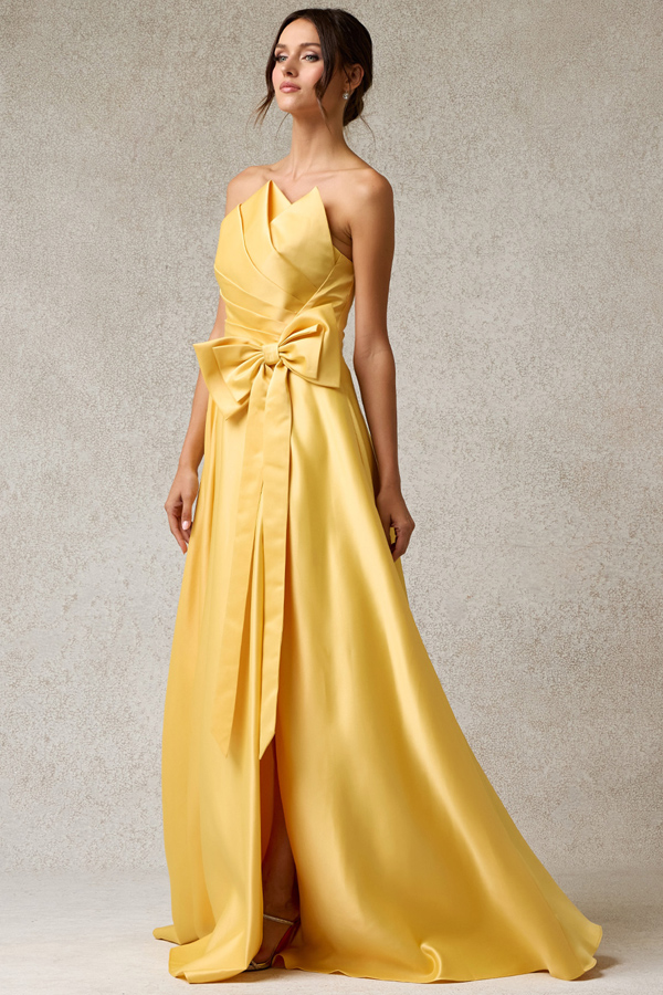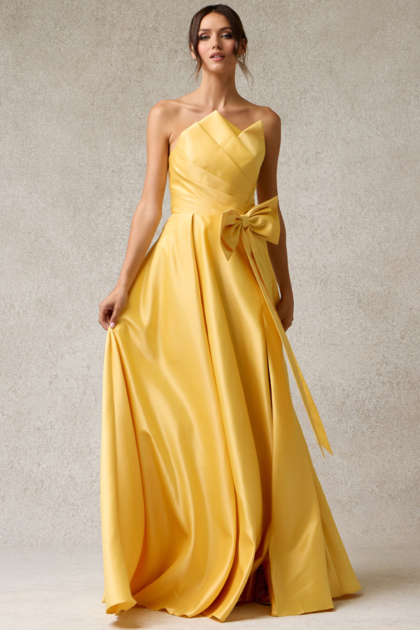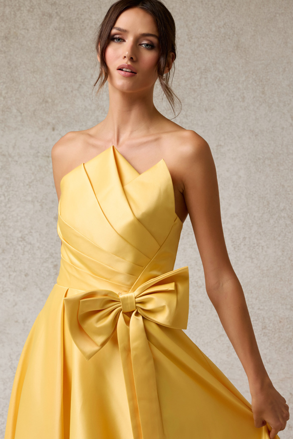 Color: YELLOW Size:- Strapless Origamy Fold Top A Line Dress