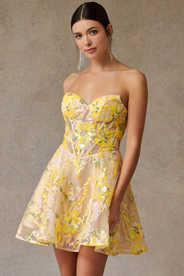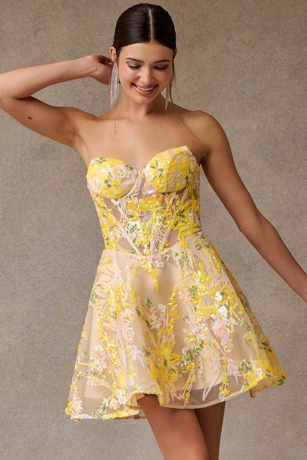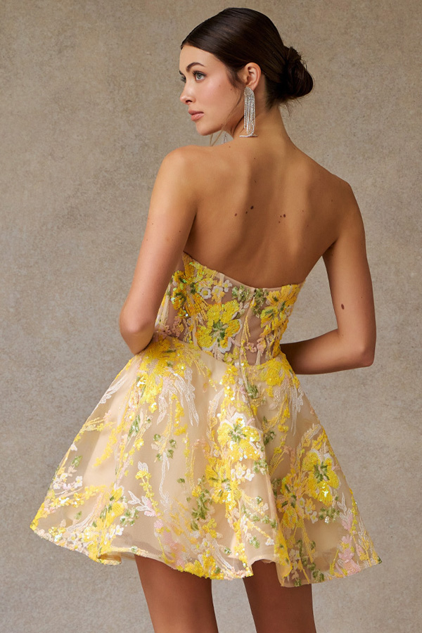 - Strapless Sweetheart Illusioin Top Cocktail Mini Dress