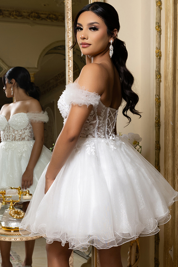 - Off Shoulder Ruffle Sleeve Sweet Top Short Dress