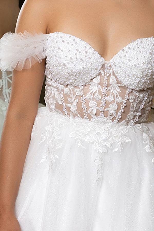 Color: IVORY Size:- Off Shoulder Ruffle Sleeve Sweet Top Short Dress