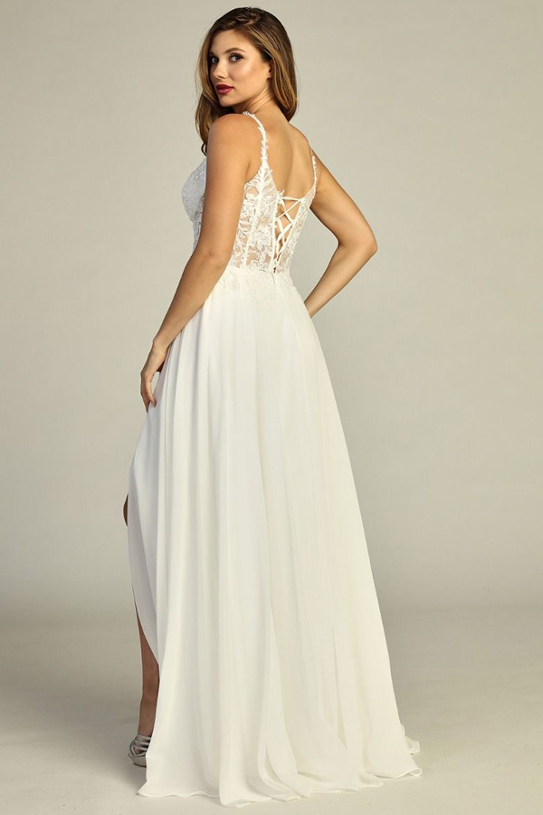 Color: IVORY Size:- Sleeveless Embellished Top A Line Chiffon Prom Dress