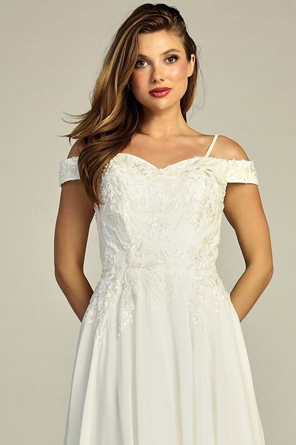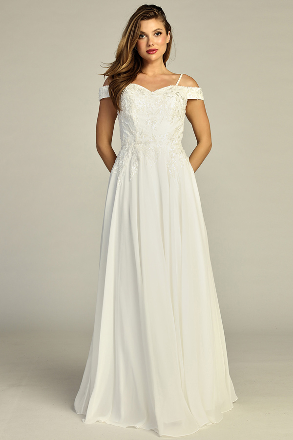 - Off Shoulder Embroidery/Lace Applique A Line Dress