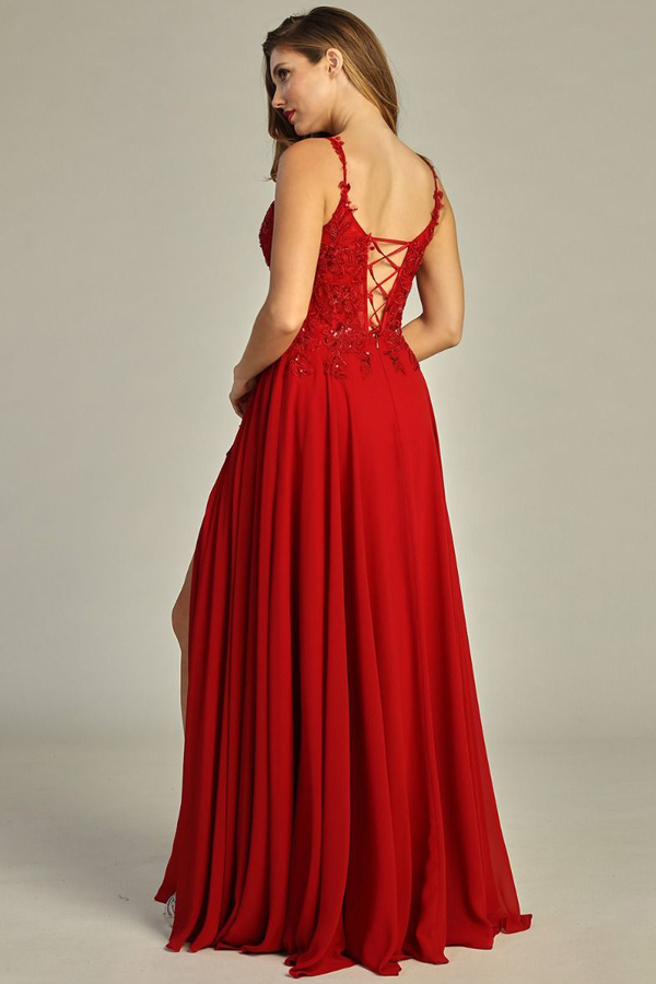 Color: DEEP RED Size:- Sleeveless Embellished Top A Line Chiffon Prom Dress