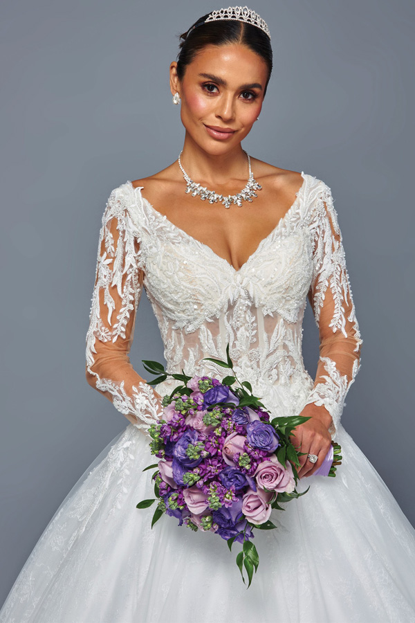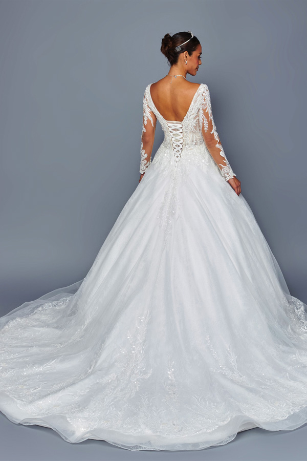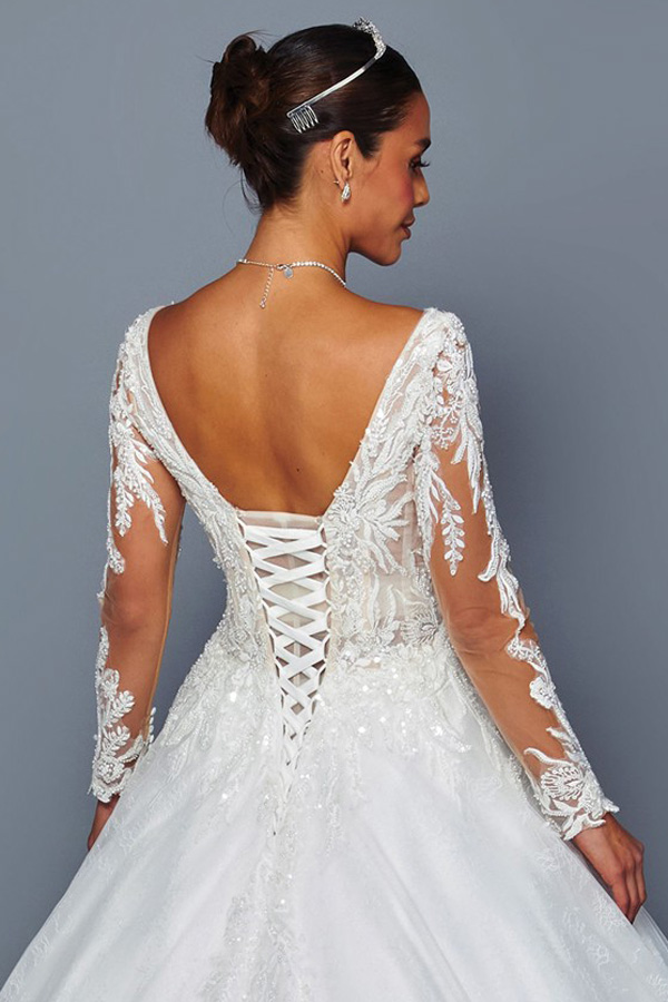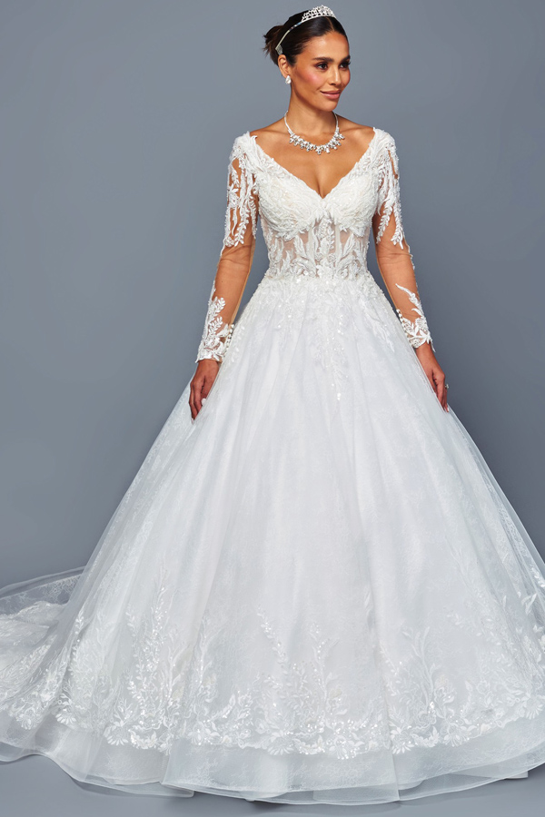 - Sheer Long Sleeve Plunging V Neck A Line Bridal Gown
