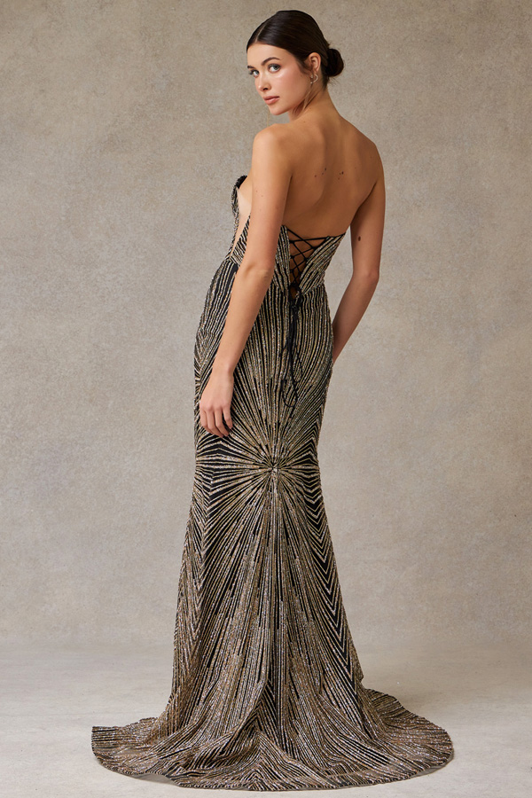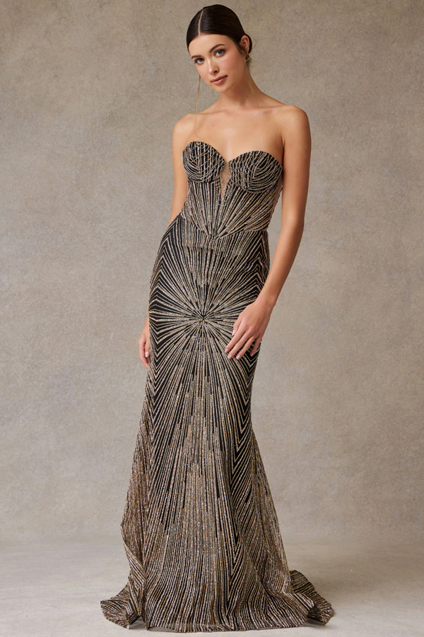 • Strapless Sweetheart Hanging Bead Sheath Dress
