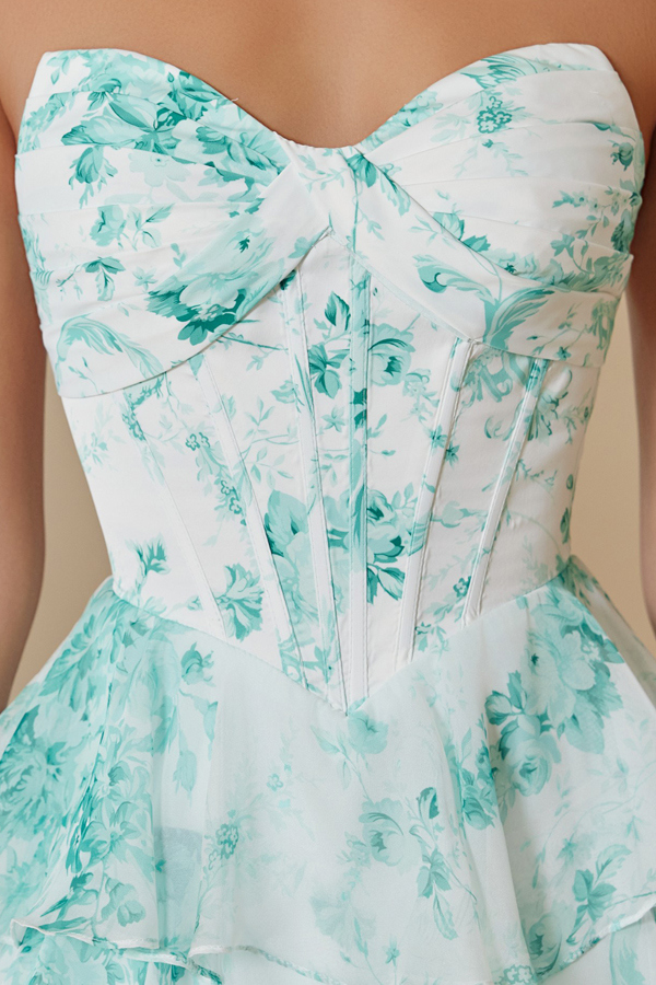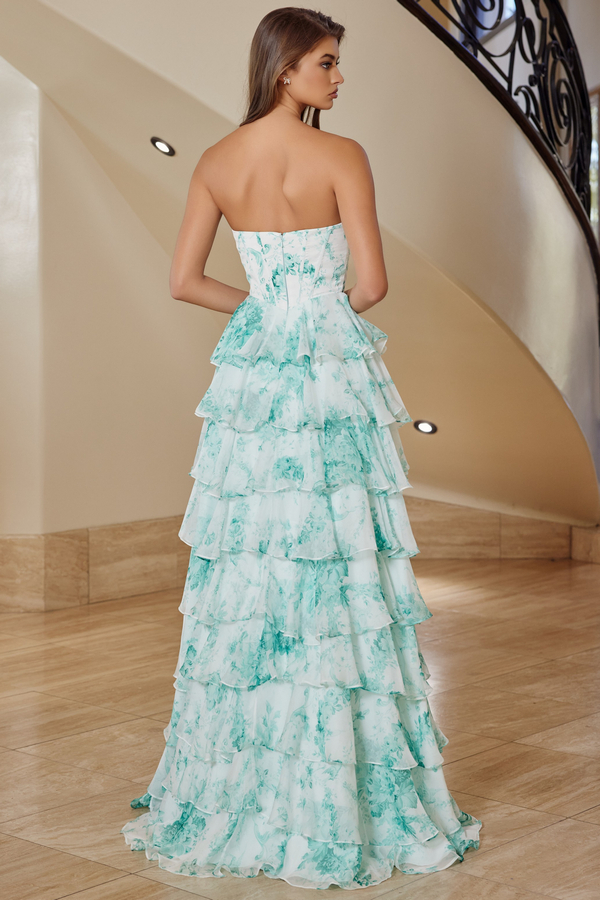 Color: SAGE Size:- Strapless Print Dress w/ Tier Skirt