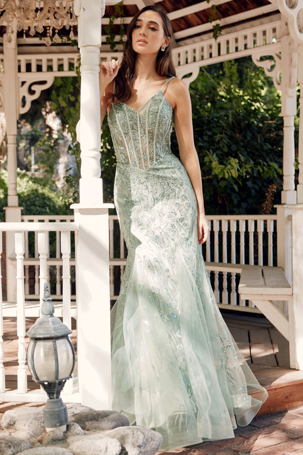 - Sleeveless Skinny Straps Bustier Corset Mermaid Dress