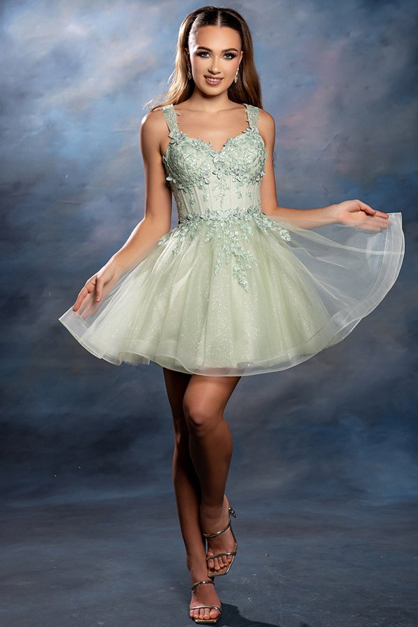 Color: SAGE Size:- Short Dress w/ Embroidered Sweetheart Top