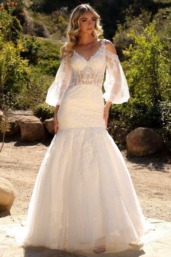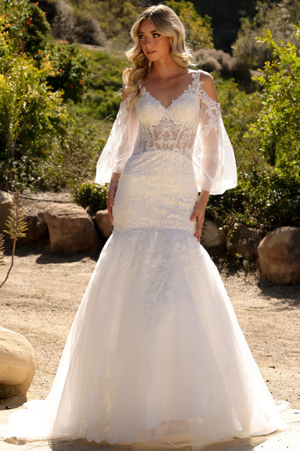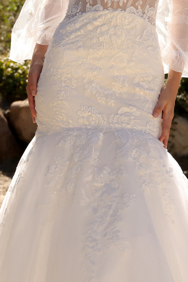 Mermaid Wedding Dress, Fishtail Bridal Dress, Long Sleeve Wedding Dress