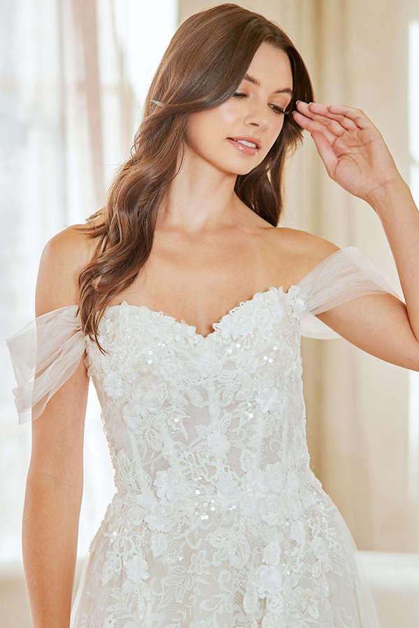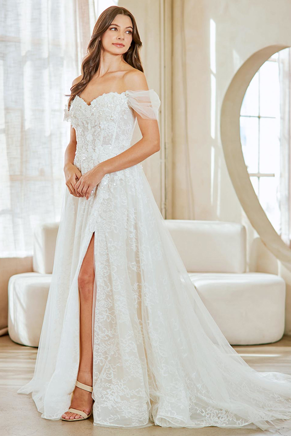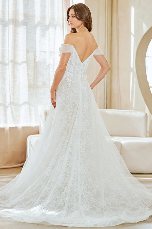 - Off Shoulder Sleeve Sweet A Line Wedding Dress