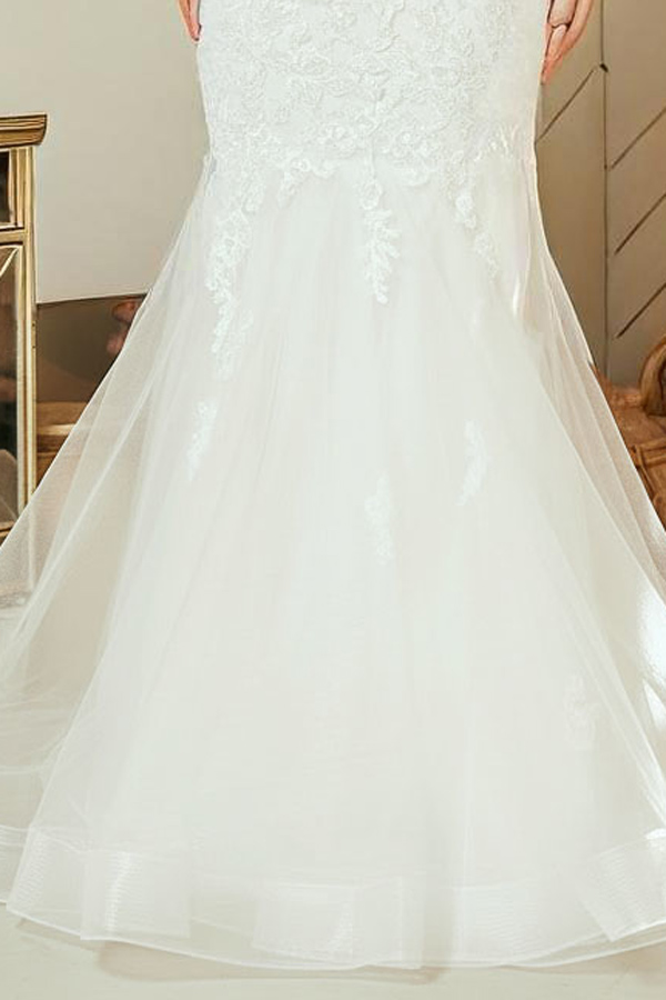 Color: WHITE Size:- Strapless Embroidered Tulle Mermaid Evening Dress