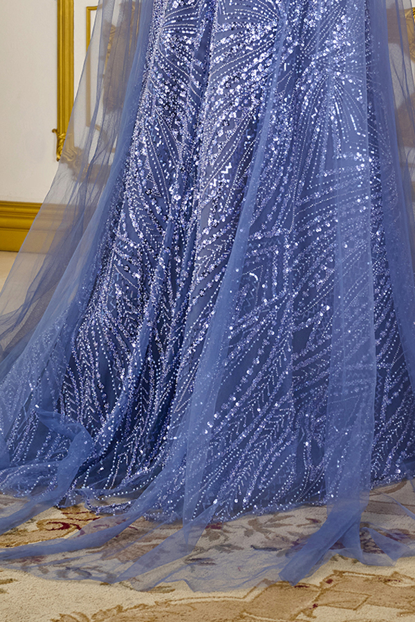 - Bead Sequin Sparkle A Line MoB Dress w/ Cape Sleeve