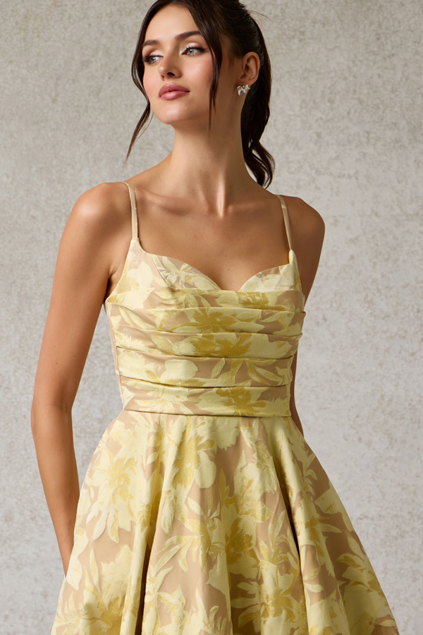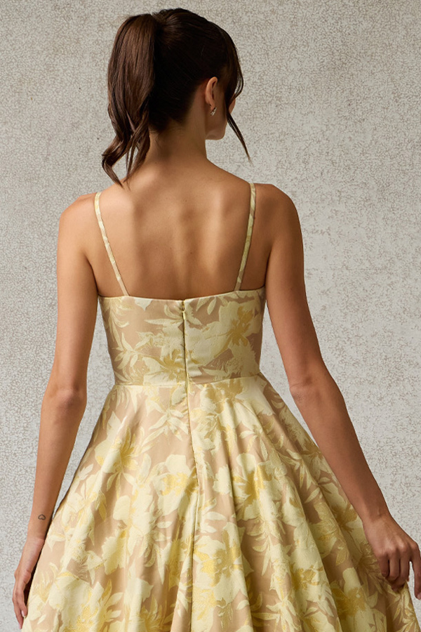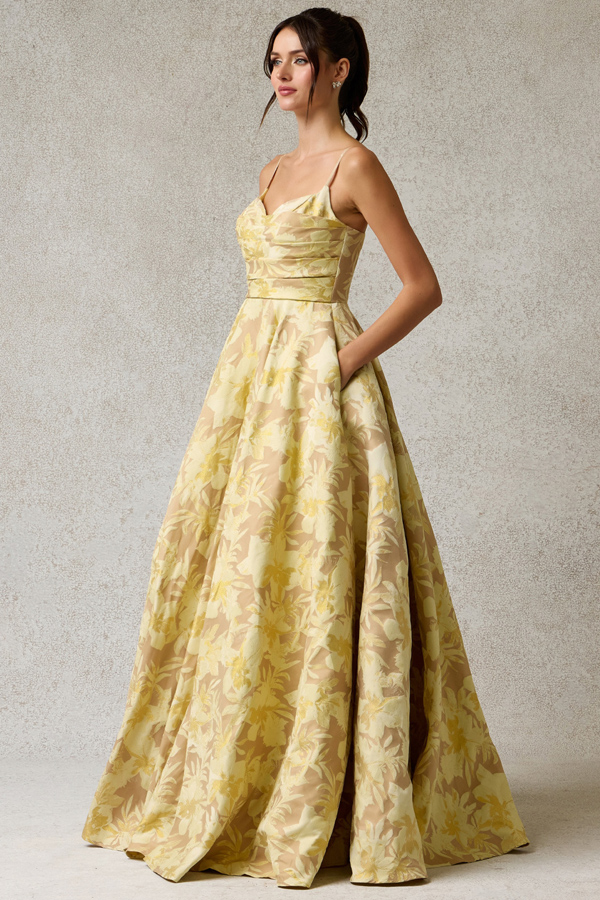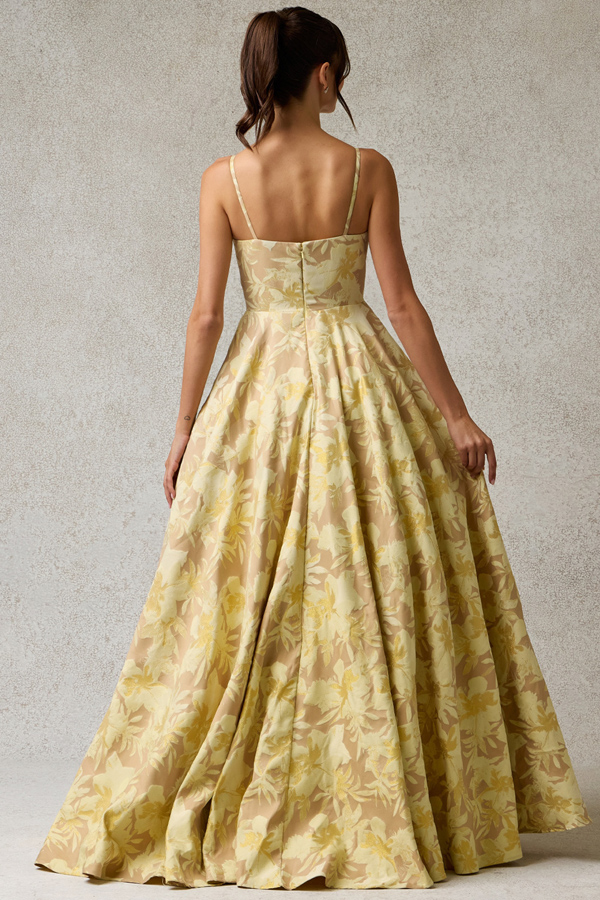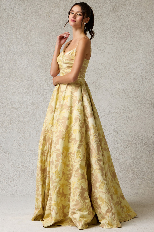 - Sleeveless Sweetheart Long A Line Jacquard Dress