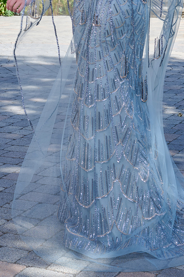 - Bead Sequin Embroidery Cape Sleeve Trumpet Dress