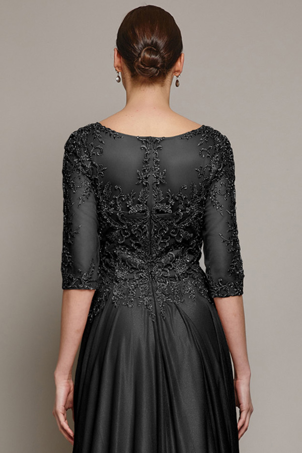 - Sheer 3 Quarter Sleeve A Line MoB Dress