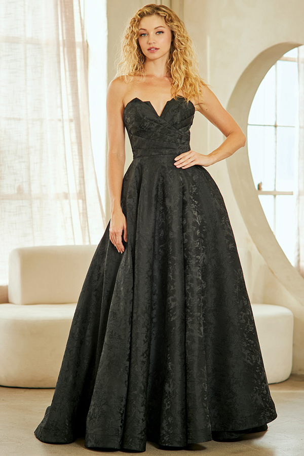 Color: BLACK Size:Strapless Sweetheart A-Line Jacquard Dress