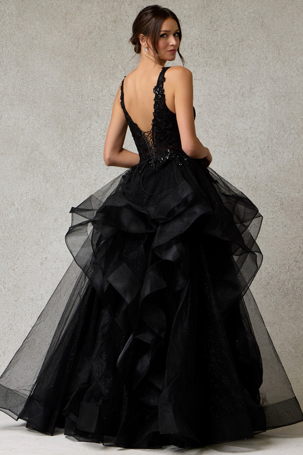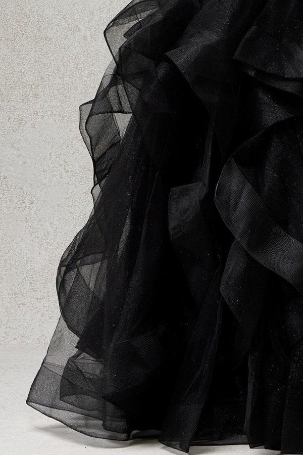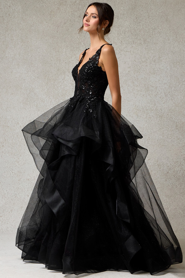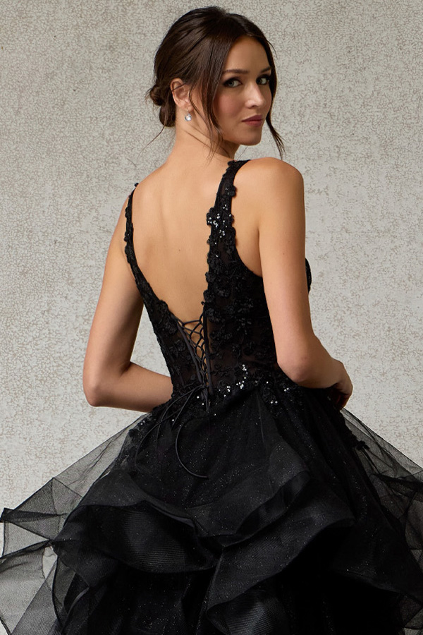 Embroidered Sequin Top Tulle Ruffle A Line Dress