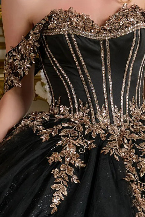 - Off Shoulder 3D Applique Quince Ball Gown
