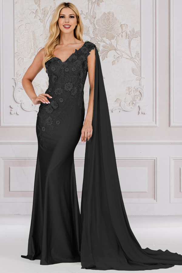 One Shoulder Floral Lace with Cape.