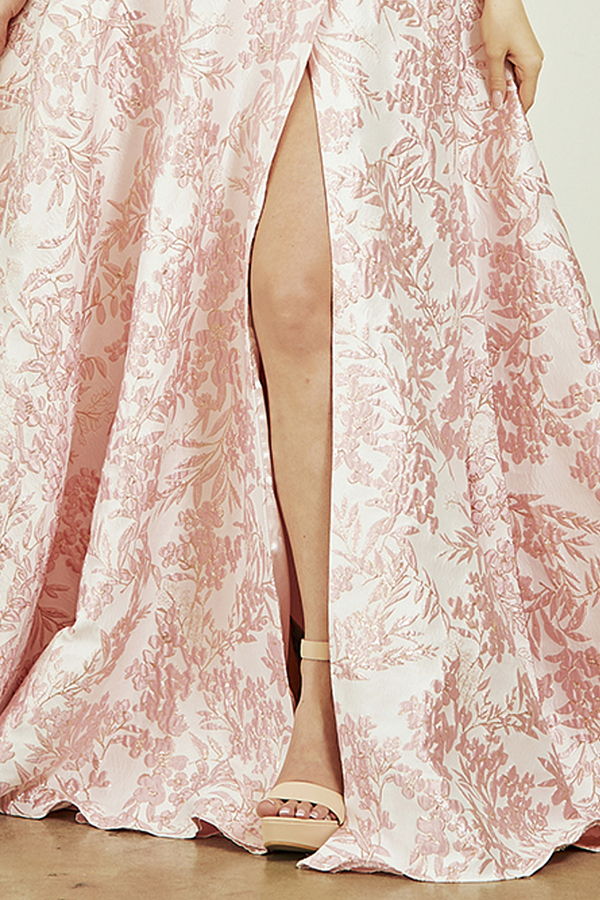 Strapless Bateau Neckline Jacquard Sweep Length A Line Dress.