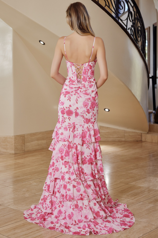 Color: PINK Size:- Fit and Flare Floral Print Dress