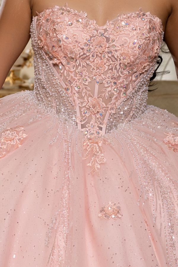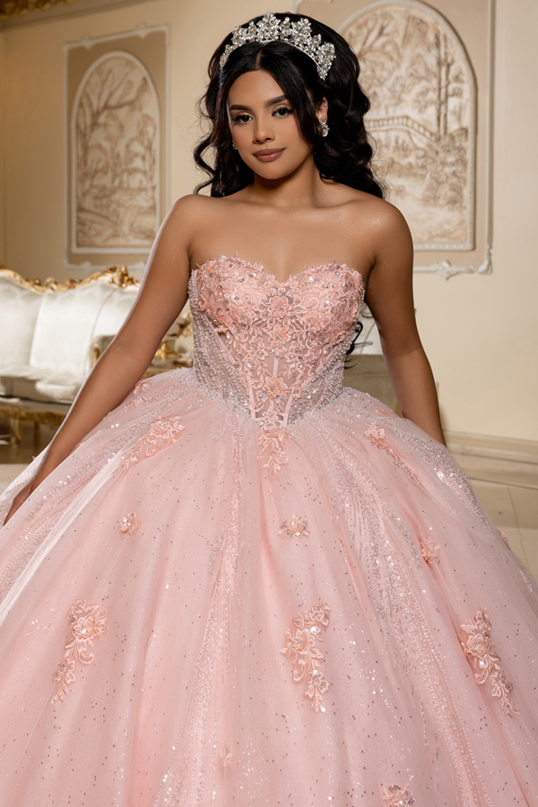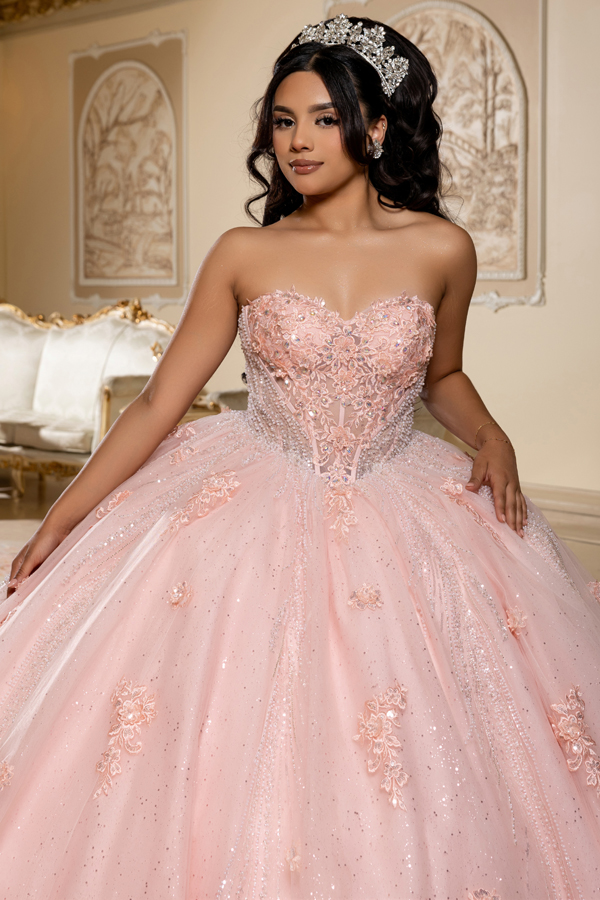 Color: BLUSH Size:- Sweetheart Jewel/Pearl Embellished Ball Gown