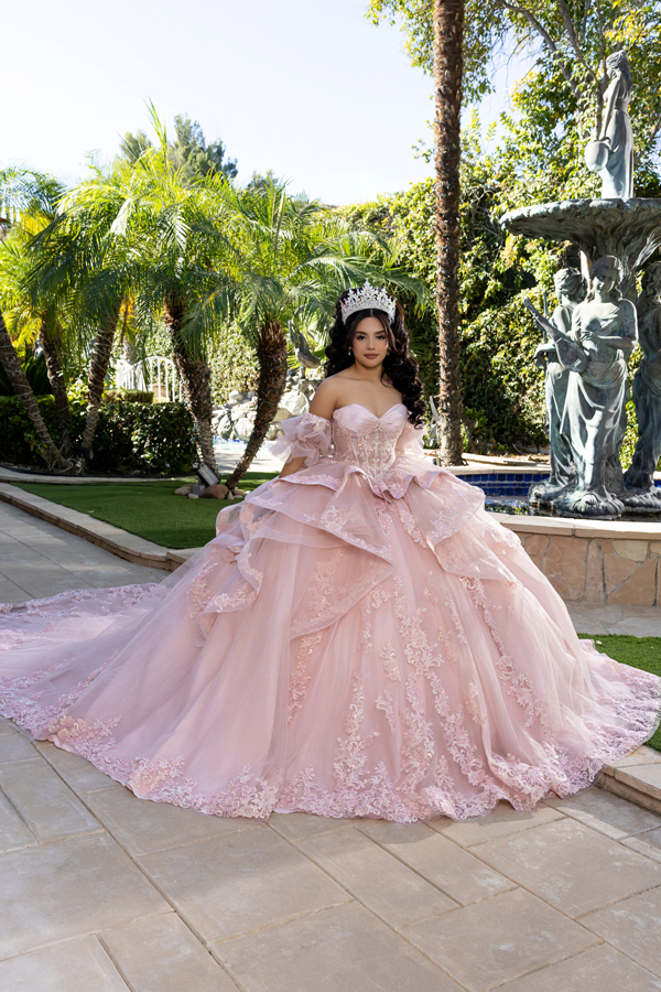 - Strapless Detached Puff Sleeve Quinceanera Dress