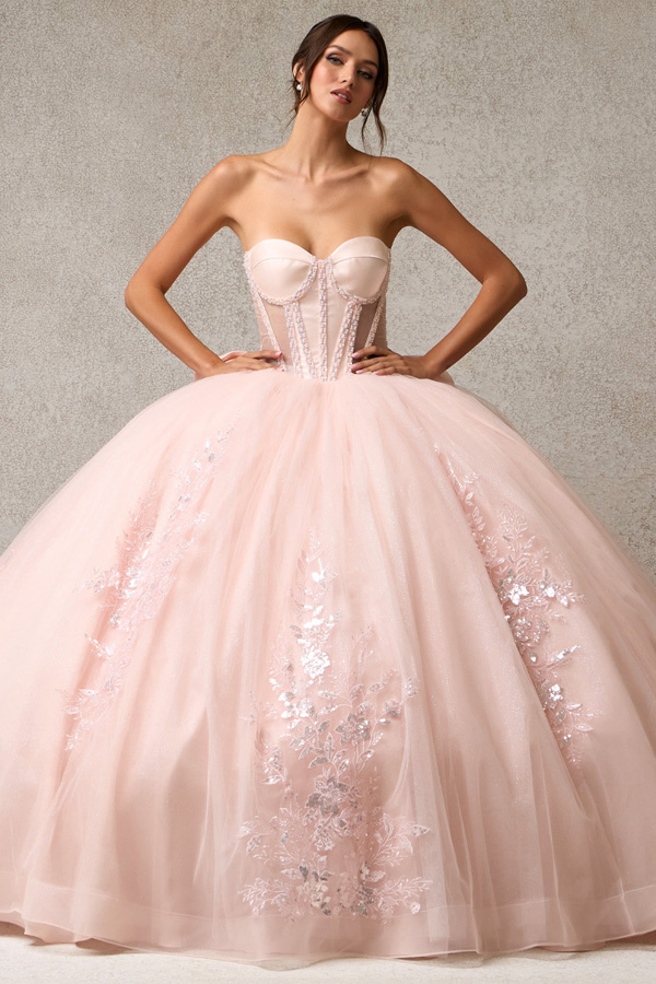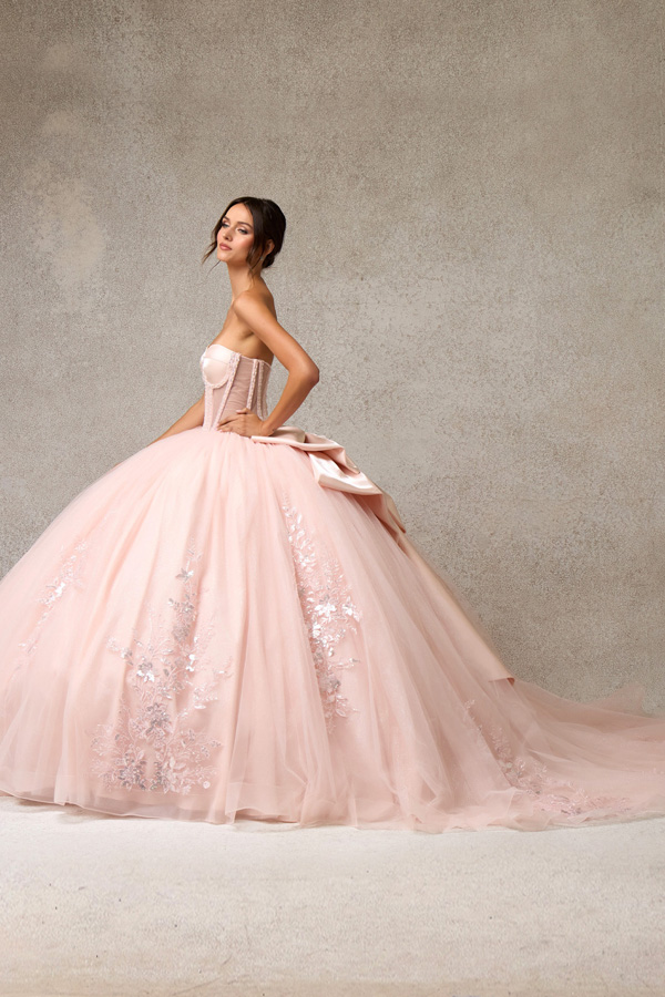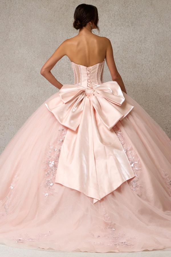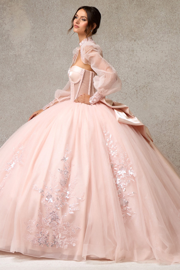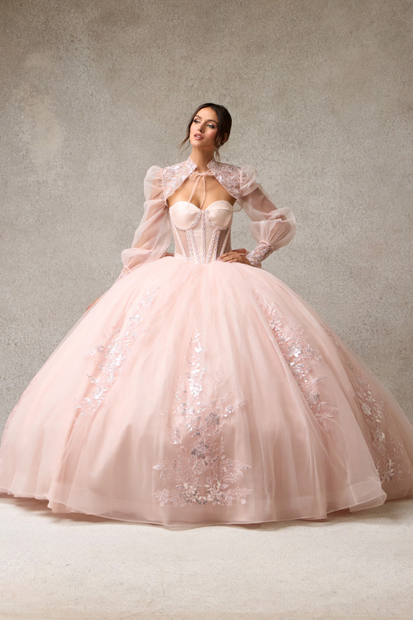 - Quinceanera Dress w/ Sheer Long Sleeve Bolero