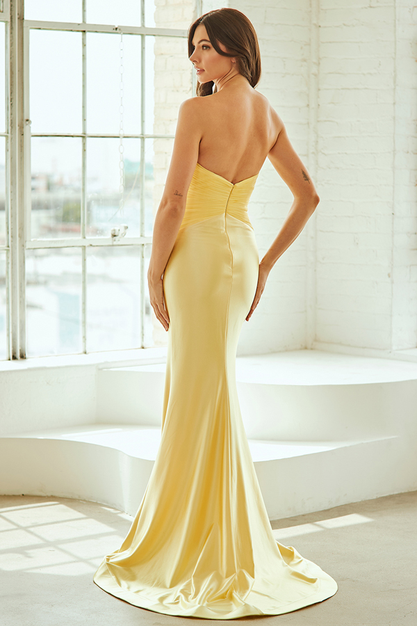 - Strapless V Neckline Jewel Neckband Drape Satin Dress