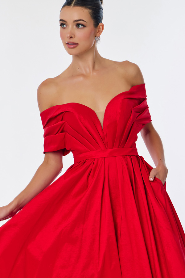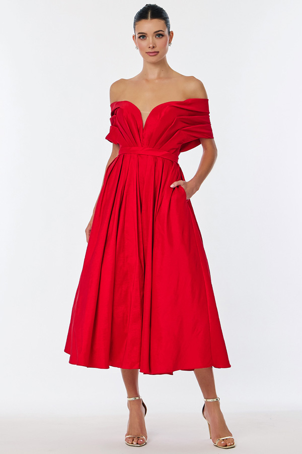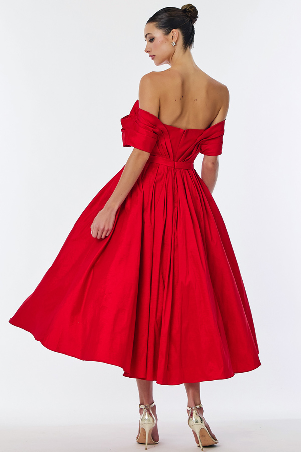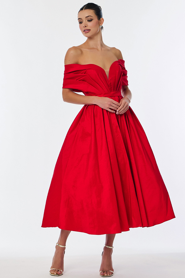 Color: RED Size:- Off the shoulder Sweetheart Taffeta Midi Dress