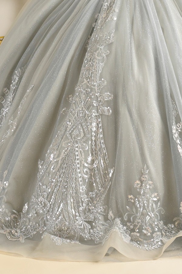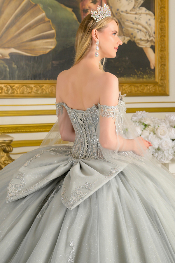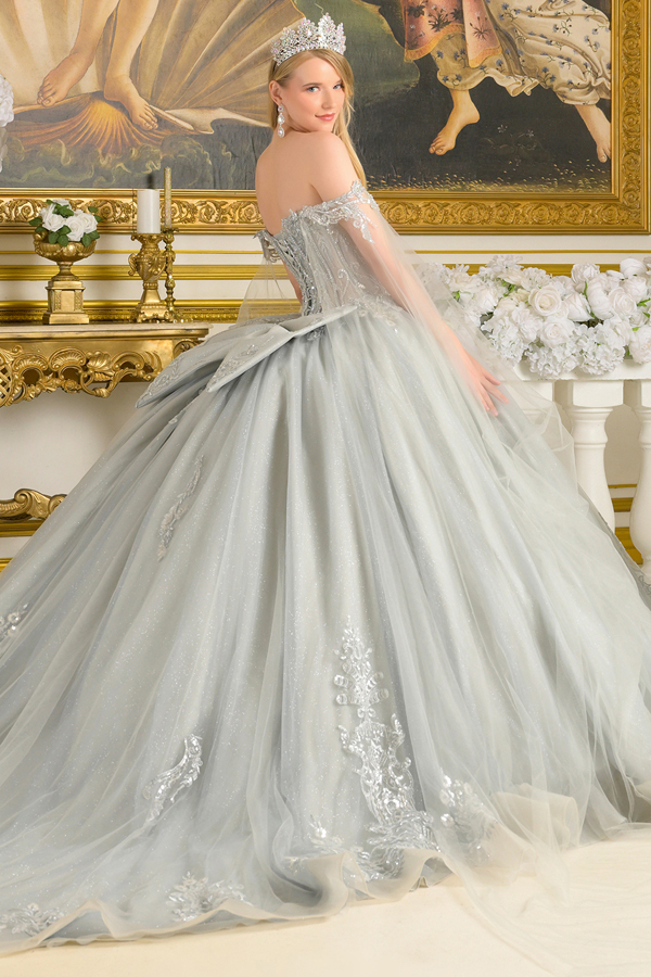 - Sweetheart Off Shoulder Mesh Cape Quince Ball Gown