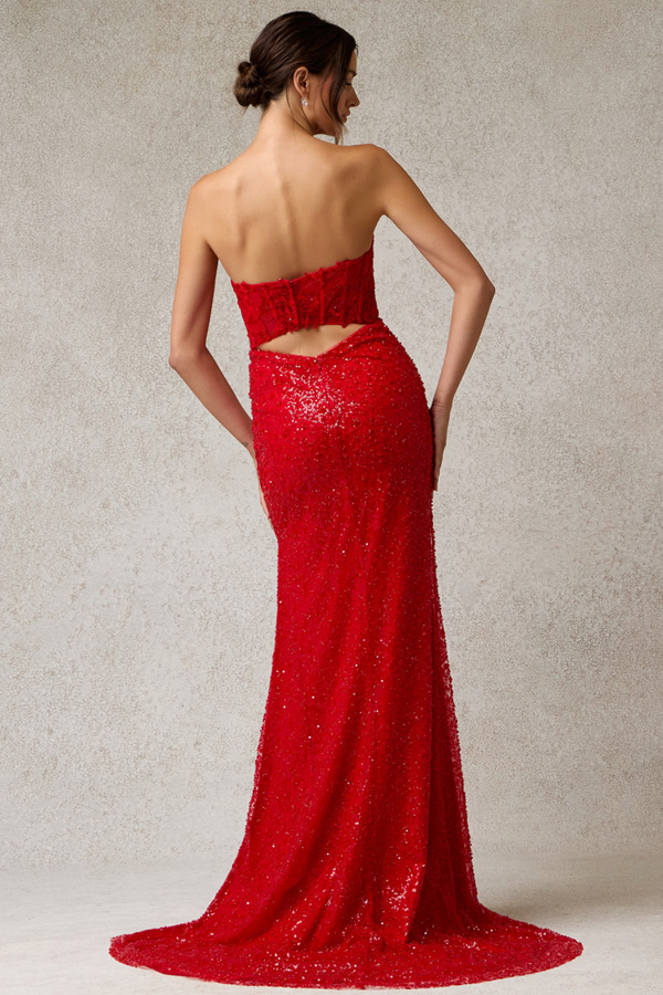 - Strapless Sweetheart Neck Embellished Sheath Dress