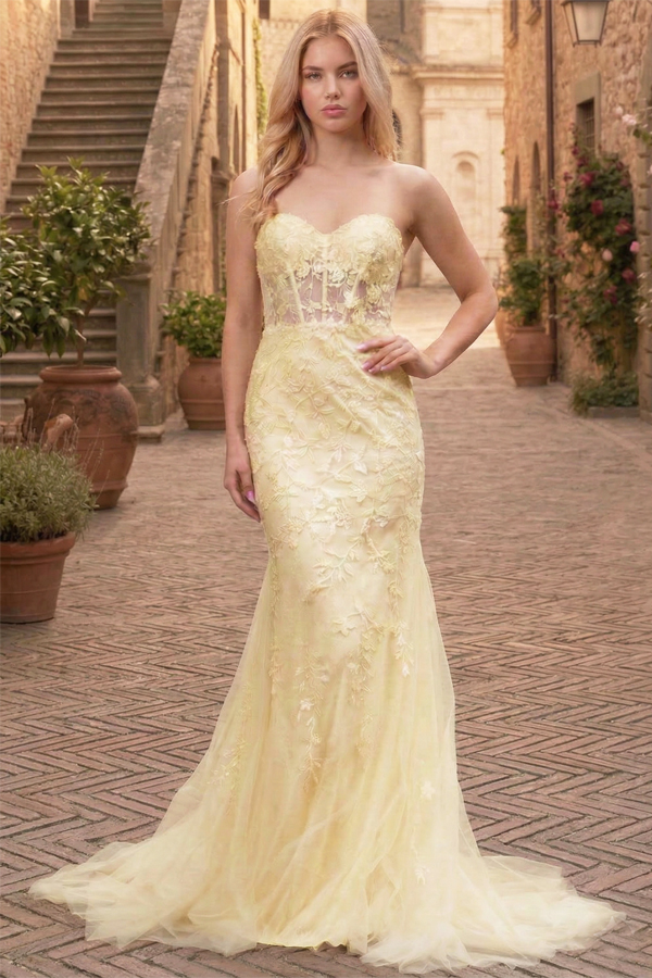 Color: YELLOW Size:- Sweetheart Boned Top Mermaid Dress