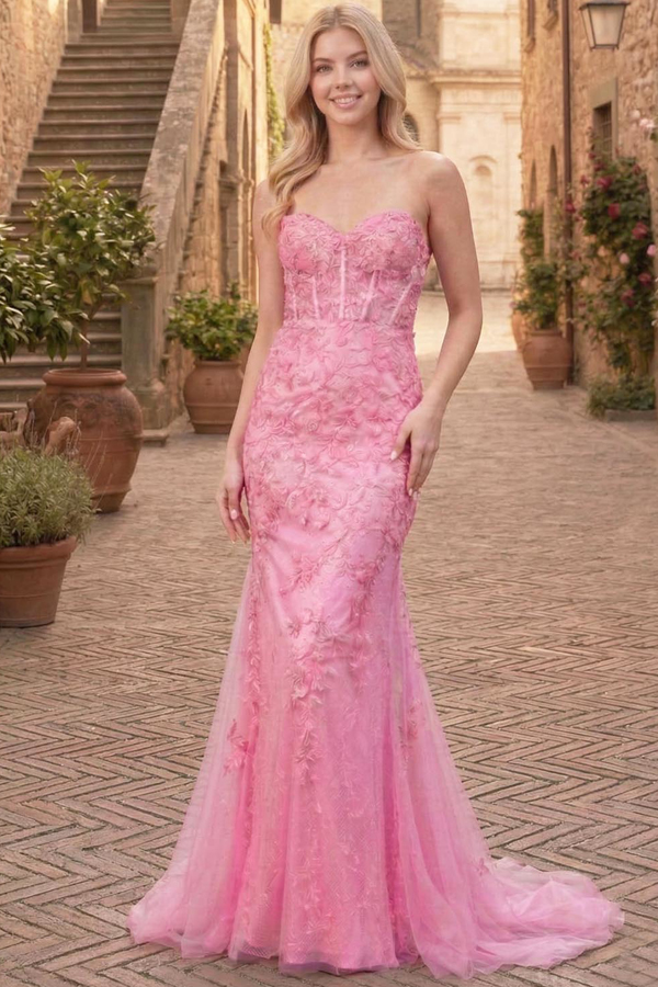Color: PINK Size:- Sweetheart Boned Top Mermaid Dress