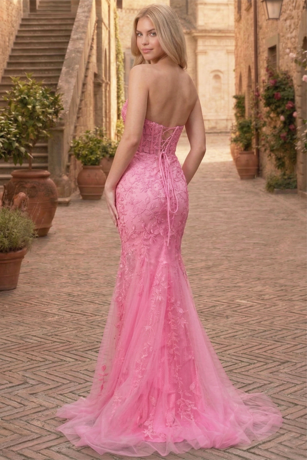 Strapless Sweetheart Boned Top Botanic Lace Mermaid Dress.
